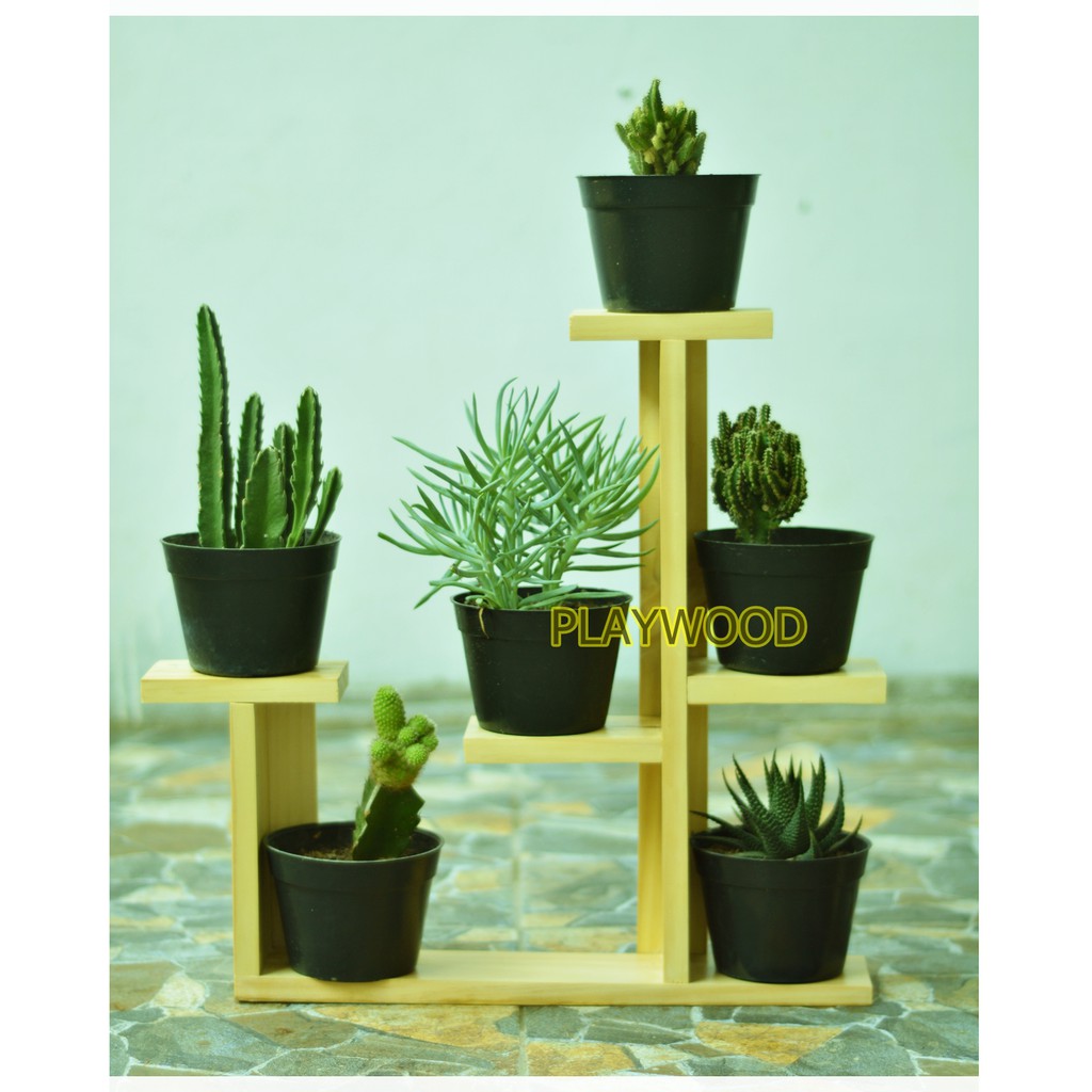 Rak pot bunga kayu mini kaktus hias Shopee Indonesia Sumber : shopee.co.id